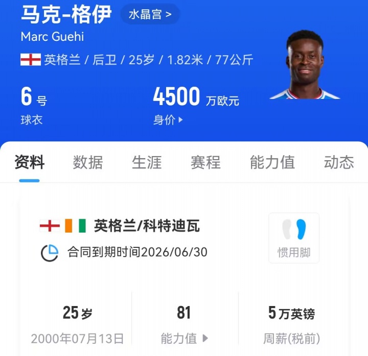 此前,水晶宫队内的其他几位球星今夏也得到了来自豪门的关注:后卫/球队队长格伊合同只剩一年,他进入了利物浦补强后卫的引援名单;攻击手埃泽夏窗早些时候曾接近加盟阿森纳,而有报道称目前他正推动自己前往热刺的转会。