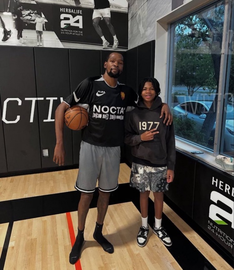 美媒发布杜兰特与球迷合影 左手拇指护具拆除 脚部尺寸引人注目